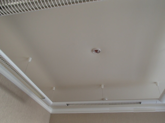 Монтаж дымового датчика на натяжном потолке.